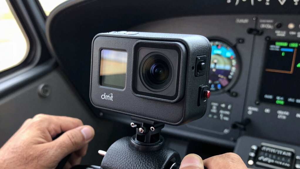 One of the most significant advantages of using an action camera in the cockpit is the variety of camera angles you can utilize. Unlike traditional cameras, action cameras are small, lightweight, and highly versatile. You can mount them in multiple positions—on the glare shield, dashboard, or even on your helmet—offering different viewpoints of your flight. This flexibility means you can capture both the overall cockpit environment and specific details, such as instrument readings or your hand movements during critical procedures. The ability to switch camera angles helps you get a thorough understanding of the flight, which is vital for accurate debriefs. Additionally, the robust construction of these cameras ensures they can operate reliably in challenging environments, further enhancing their usefulness in cockpit settings. Incorporating weather resistance features ensures they perform well even in adverse conditions. Moreover, many action cameras also feature waterproof designs, allowing you to record in a variety of environmental conditions without worry. The durability of these cameras is essential for consistent use in demanding environments, providing peace of mind during flights.