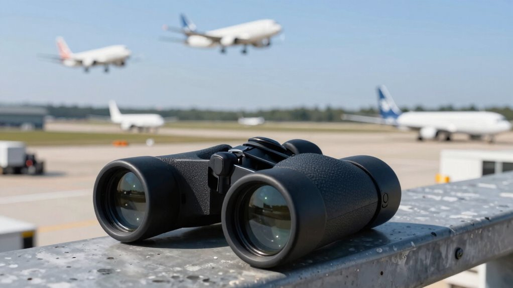 In wildlife observation, especially near busy airfields, your ability to distinguish details can prevent accidents and improve safety. Image stabilization allows you to focus on distant animals or birds without constantly adjusting your grip or strain on your eyes. This is essential when wildlife crossing runways or interfering with operations, as quick, clear identification can avert potential hazards. Similarly, during sports events held near airfields or in open spaces, these binoculars let you follow rapid movements seamlessly. Whether it’s a drone race, a local football match, or a military exercise, the stabilized view means you don’t miss key moments, and your focus remains sharp despite any vibrations or movements. Incorporating optical stabilization technology further enhances image clarity and reduces eye fatigue over extended periods of use.