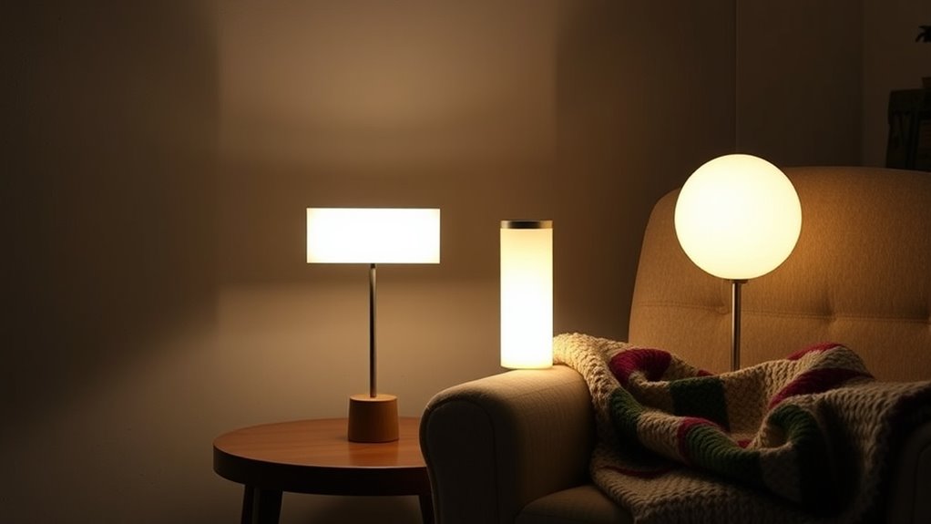 Portability and size are essential factors when selecting a SAD lamp, especially if you want to use it in different settings or take it on the go. Compact, lightweight designs make it easy to carry between home, office, or travel locations without hassle. Smaller lamps save space on desks or nightstands, fitting seamlessly into any environment. Features like adjustable stands or rotatable heads add flexibility, allowing you to position the light comfortably in various settings. Battery-powered or USB-compatible options boost mobility, letting you enjoy light therapy without needing a wall socket nearby. Overall, portable SAD lamps are designed with slim profiles and lightweight materials, making handling and transport effortless. These features ensure you can maintain your light therapy routine wherever life takes you.