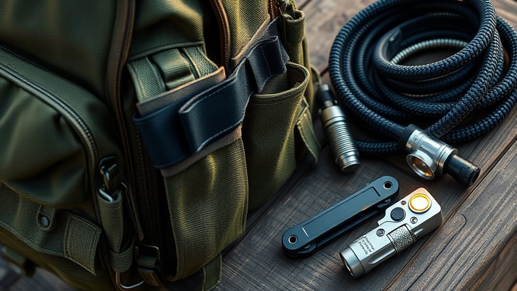To guarantee a safe and enjoyable outdoor experience, you need reliable gear and equipment that match your activity and environment. Focus on essentials like a sturdy tent, comfortable sleeping bag, proper clothing, and helpful tools like a multi-tool and flashlight. Good gear works together to keep you safe and comfortable, so choosing quality items and packing smartly will make all the difference. Keep exploring to discover how to optimize your outdoor gear setup even further.