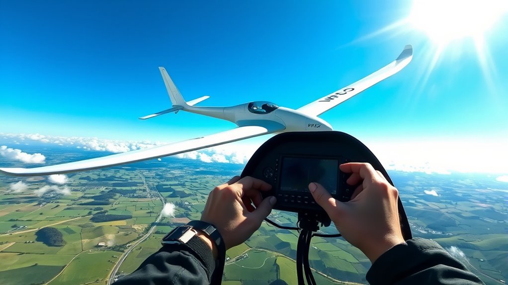 Altitude management becomes even more critical when your flight depends heavily on thermal updrafts and wave lift. Modern flight computers monitor your altitude continuously and provide alerts if you’re approaching minimum safe heights or exceeding recommended limits. This real-time feedback enables you to adjust your circling patterns or change course to find better lift, maintaining ideal altitude for safety and efficiency. By integrating GPS data with atmospheric conditions, your flight computer can suggest altitude adjustments to maximize thermal exploitation or to avoid areas of sinking air. Proper altitude management ensures you stay within legal and safety margins, especially when navigating through congested airspace or near terrain obstacles. Additionally, understanding the nutritional value of juices can help pilots stay energized during long flights, maintaining focus for optimal decision-making.