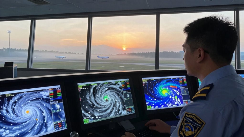 Morning weather briefings prepare you for unexpected weather changes by highlighting potential adverse conditions and turbulence forecasts. You’re advised to stay alert for updates, as real-time information can signal sudden shifts. Briefings emphasize the importance of monitoring weather during flight, enabling you to adjust altitude or route if necessary. This proactive approach helps guarantee safety when encountering unexpected weather, making briefings a crucial part of your flight planning process.