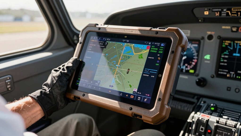 When it comes to extreme weather, rugged tablets are built to withstand the storm. Their weather resistance features and durability testing ensure they can handle snow, rain, or high temperatures without breaking a sweat. You can rely on these devices to perform reliably in harsh conditions, making them a pilot’s trusty companion in any climate. Their tough build means you won’t have to worry about weather throwing a wrench in your plans.