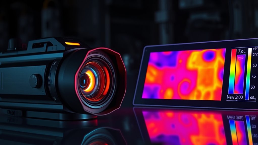 Emerging technology in thermal sensors and infrared cameras is revolutionizing how you detect and analyze heat signatures. Advances in AI enable real-time analysis, pattern recognition, and automated responses, making systems more precise and reliable. Miniaturization allows these features to fit into portable devices like drones and wearables, broadening their use. With ongoing improvements, you’ll see smarter, more adaptable systems that are easier to operate. Keep exploring to discover how these innovations can impact your industry and daily life.